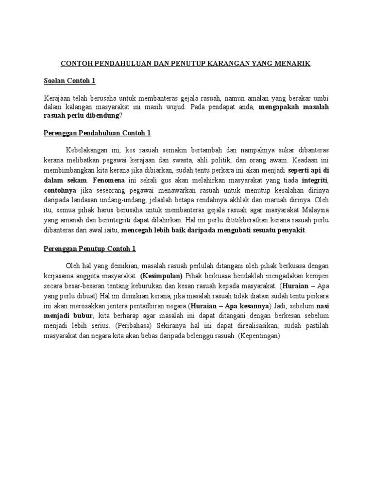 Contoh Pendahuluan Dan Penutup Karangan Yang Menarik Pdf