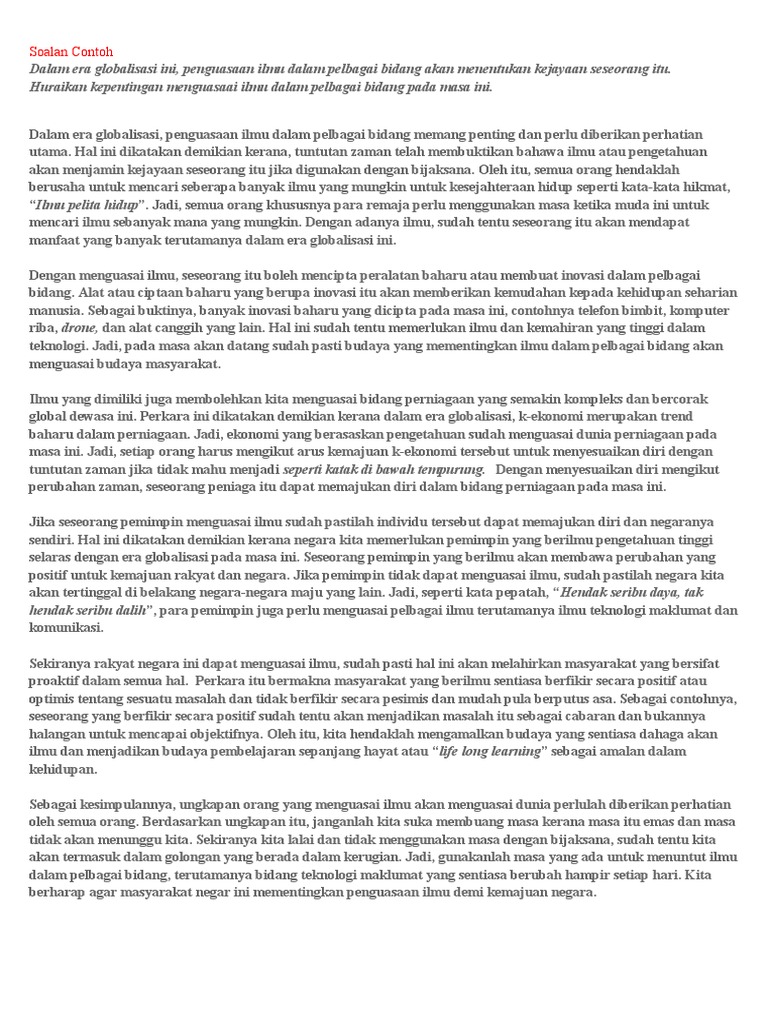 Doc Contoh Karangan Spm Bahasa Melayu Nur Aliza Academia Edu